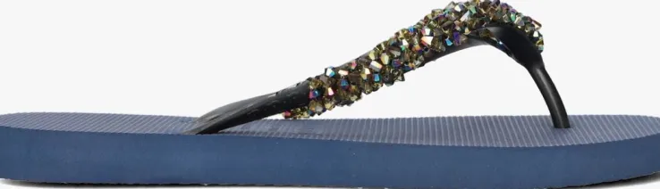 Deze blauwe ABI slipper uit de collectie vanluxurymerk Uzurii is een ware eyecatcher om al die stranden en drukke boulevards mee af te struinen! De producten van dit Nederlandse modemerk zijn stuk voor stuk handgemaakt met speciale technieken en grote toewijding. Deze luxe slipper is uitgevoerd in hoogwaardig rubber en heeft prachtigestrass-stenen in holografische kleuren op de wreefband. De schoenendoos waar deze mooie slippers in worden geleverd heeft een luxe afwerking enaan ze binnenzijde voorzien van een spiegel. Na gebruik kanje ‘m dus gebruiken als handig make-up of sieradenopbergdoos.