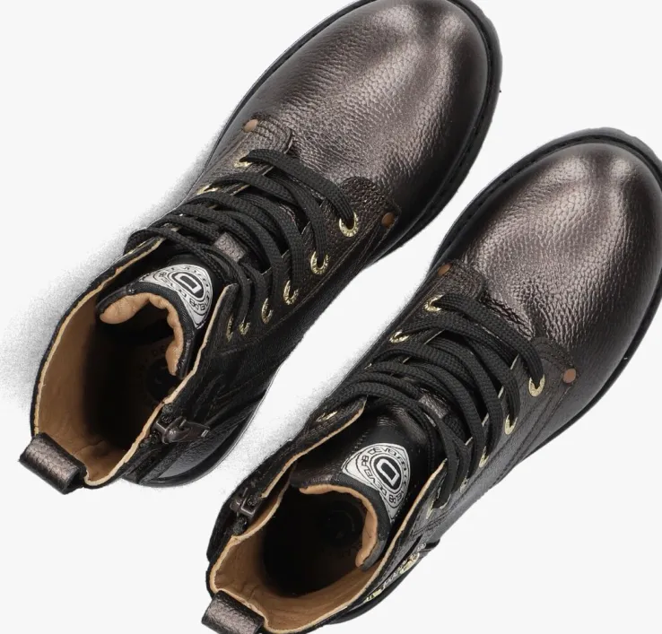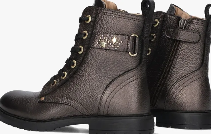 Maak kennis met de 44366 veterboots voor meisjes. Deze bronskleurige leren boots zijn perfect voor avontuurlijke dagen in het park of een middagje bij familie. De ronde neus en de schachthoogte van 13 cm zorgen voor een comfortabele pasvorm. De goudkleurige veterringen, sterretjes op de zijkant neon roze textiel label op de tong geven een leuk detail, aan deze kleurige laarzen. Dankzij de handige rits trek je ze makkelijk aan en uit. De rubberen zool biedt extra grip, ideaal voor actieve meiden. Combineer deze stoere boots met een leuke jeans of een schattig jurkje voor een trendy look. De binnenkant van leer zorgt voor extra comfort, zodat je de hele dag door kunt genieten van stijl en gemak.