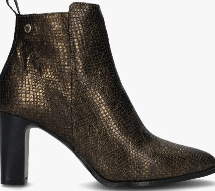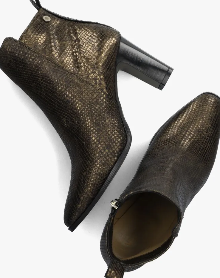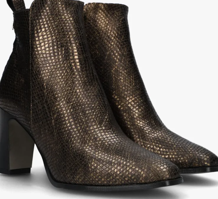 De elegante Italiaanse ontwerpen van het merk NOTRE-V zijn er voor de verfijnde vrouw die er graag effortless chic uit wil zien. De producten zijn gemaakt van luxe materialen met subtiele accenten en een knipoog naar de laatste trends.Dit bronzen enkellaarsje 224838heeft een feminineuitstraling door de slanke vormgeving, de slangenprint in het leer, de blokhak en de metalen merkstud op de schacht.Het laarsje is uitgevoerd in leer met een handigerits aan de zijkant voor een extra ruime instap. Het binnenwerk van zacht en soepel leer voelt comfortabel aan en heeft een vast voetbed. De hak is 8 centimeter hoog en de schacht heeft een hoogte van 11centimeter.