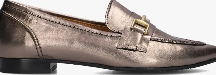 De elegante Italiaanse ontwerpen van het merk NOTRE-V zijn er voor de verfijnde vrouw die er graag effortless chic uit wil zien. De producten zijn gemaakt van luxe materialen met subtiele accenten en een knipoog naar de laatste trends. Met deze loafer 4628 maak jij jouw outfit compleet en zorg je voor een stoere touch. De buitenkant is uitgevoerd in bronskleurig leer met een glans en heeft een mooi, stijlvol silhouet. De voering is gemaakt van leer met een vast dempend voetbed en een hielstuk van suède voor extra comfort. Deze schoen is afgewerkt met een opstaande neusnaad en heeft een goudkleurige horsebit over de wreef. De gladde zool is gemaakt van rubber en heeft een gelaagd blokhakje van 1,5 centimeter hoog dat de schoen extra elegant maakt. Combineer deze loafer met je favoriete jeans of draag ze onder een leuk rokje.