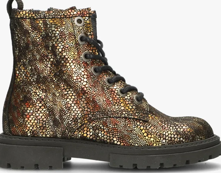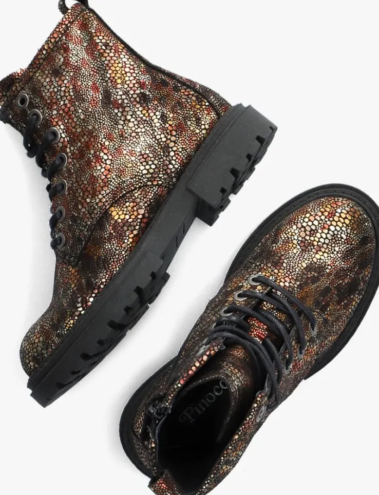 Een stoere meid verdient een stoere veterboot. Ga voor deze leuke veterboot P1158 uit de collectie van het merk PINOCCHIO. De bronze buitenkant is gemaakt van leer en heeft een metallic uiterlijk. Toffe details zijn de zwarte veterringen, de ronde veters en de aantreklus. Het binnenwerk is leer gevoerd met een uitneembaar voetbed en dankzij de ritssluiting naast de vetersluiting trek je ‘m gemakkelijk aan en uit. De zwarte, rubberen zool heeft een wat dikkere zool dan gebruikelijk waardoor het een heel trendy laarsje is geworden. Het gripvaste profiel zorgt voor een goede grip en stabiliteit. De schachthoogte is 9 centimeter. Waar combineer jij ’m bij?