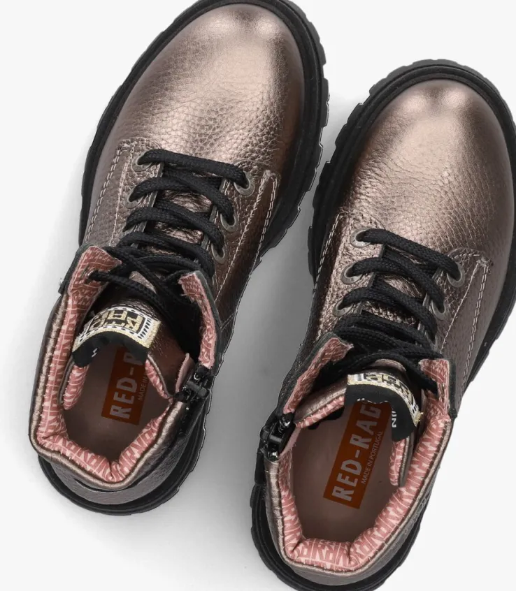 Stap stijlvol de wereld in met deze bronskleurige veterboots van RED-RAG. De 12500 boots zijn gemaakt van hoogwaardig leer, zowel aan de buiten- als binnenkant. De boots hebben een bedragen look met een toffe opvallende merkembleem op de tong. Met een schachthoogte van 14 cm en een stevige rubberen zool bieden ze comfort en duurzaamheid. De ronde neus en ritssluiting maken ze niet alleen praktisch, maar ook trendy. Perfect voor een dagje shoppen of een middagje in het park. Combineer ze met een stoere jeans of een schattig jurkje voor een veelzijdige look. Deze boots zijn een must-have voor elke modieuze meid!