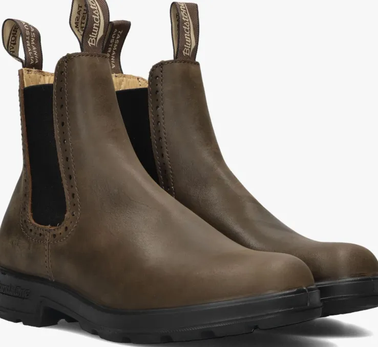 Waar je ook gaat,met de waterafstotende schoenen van het Australische merkBLUNDSTONE aan je voetenben je klaar voor ieder avontuur!Dit zijn namelijk niet zomaarschoenen, dit zijn BLUNDSTONES!En of je nu een coole stedentrip gaat maken of toe bent aan een uitdagende outdoor wandeling, deze schoenen zorgen voor droge en comfortabele voeten de hele dag door. Ze zijn geïnspireerd op de mooie, maar ruige ondergronden van Tasmanië inAustralië en hebben een stijlvol, robuust uiterlijk door de twee elastieken aan de zijkant, waardoor ze een ruime instap en een hoog loopcomfort bieden. Ze worden liefkozend ‘BLUNNIES’ genoemd en zijn te herkennen aan de ‘pull tags’ van textiel merklint op de voor-en achterkant van de schacht. Dezebruine chelseaboots WOMEN’S zijn gemaakt van premium nubuckleer met klassieke brogue perforaties. Ze hebben eenvoering van leer en textiel met een uitneembaar voetbed van geperforeerd textiel. De zolen zijn licht en flexibel waardoor jeer heerlijk op loopt en vermoeide, pijnlijke voeten tot het verleden behoren. Het grove profiel zorgt voor een perfecte grip en de hak met reliëf merkopdruk geeft je een klein beetje extra lengte. De zool is 2 centimeter dik, de hak heeft een hoogte van 3 centimeter en de schacht is 14centimeter hoog.Deze schoenen zijn gemaakt om lang mee te gaan, maar door ze goed te verzorgen blijven ze langer mooi en gaan ze nóg langer mee!