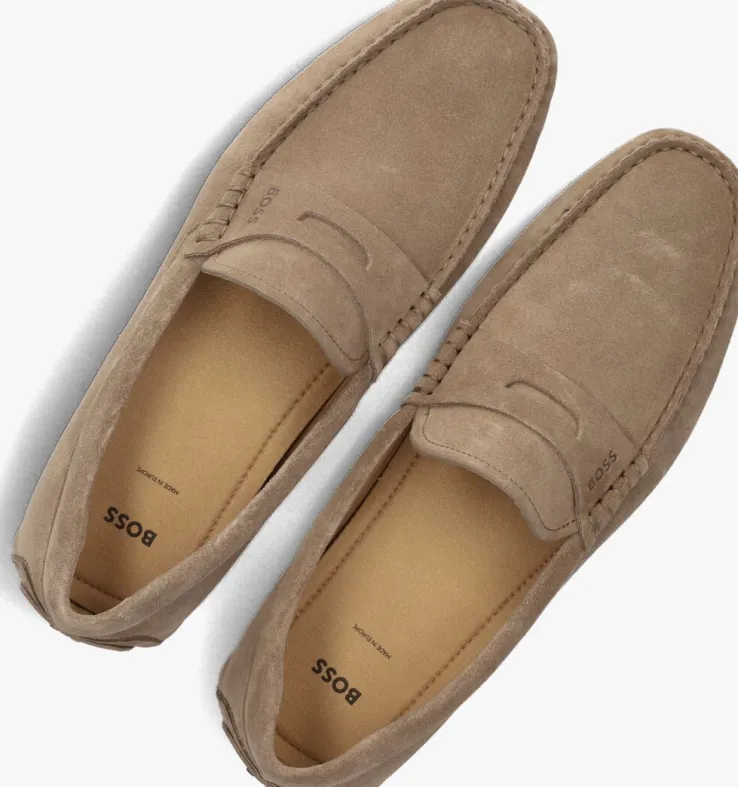 Ontdek de stijlvolle NOEL mocassins voor heren, perfect voor de lente en zomer. Deze bruine schoenen van BOSS combineren een suède buitenkant met een zachte textiele binnenkant voor optimaal comfort. De carré neus en platte zool van rubber zorgen voor een moderne uitstraling. Ideaal voor een ontspannen wandeling door het park of een zomerse barbecue met vrienden. Combineer ze moeiteloos met een lichte linnen broek of een casual chino voor een verfijnde look. Deze mocassins zijn de perfecte aanvulling op je garderobe voor de warmere maanden. Geniet van stijl en comfort in één.