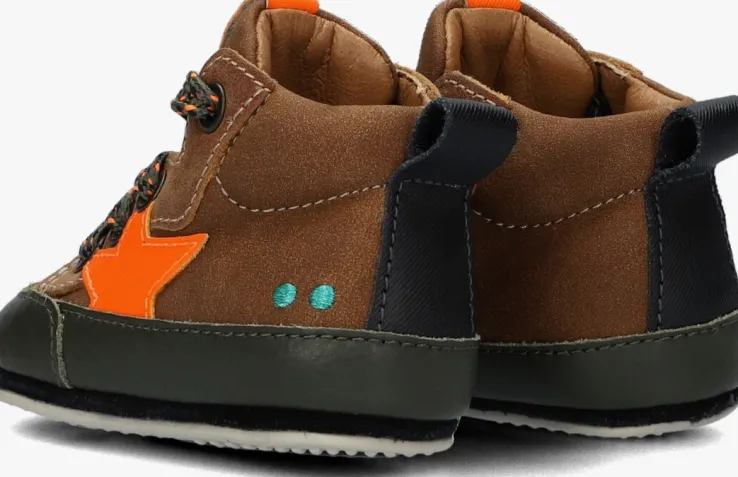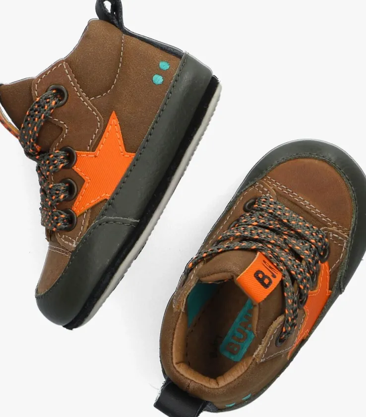 Daar gaat je kleintje, hij of zijzet zijn of haar eerste stapjes of begint te staan! Tijd om nu de allereerste schoentjes uit te zoeken. Naast dat ze er natuurlijk heel leuk uit moeten zien, moeten ze ook flexibel zijn en een goede steun en grip geven. Dit hoge sneaker modelZULKE ZACHT van hetNederlandse merk BunniesJR heeft het allemaal. Ze zien er gaaf uit dankzij de bruinelederen buitenkant met opvallende neonoranje ster applicatie aan de zijkant van de schoen en de donkergroenedetails. Aan de hiel vind je dekenmerkende Bunnies stippen, een textiel hielband en de tong is gesierd met een neonoranje merklabel met zwarte opdruk. Het binnenwerk heeft een lerenvoering met een uitneembaar voetbed. Het rubberen super flexibele zooltje buigt mee met het voetje voor een goede afwikkeling én ontwikkeling van het voetje en heeft een anti-slip profiel. Met deze toffe schoentjes is je kindje helemaal klaar voor deze nieuwe spannende fase!