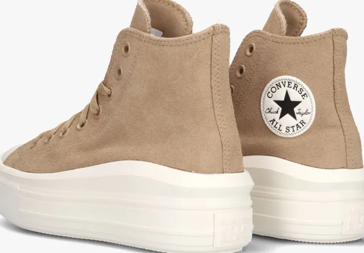 Zoek het hogerop met de super dikke plateauzool van de CHUCK TAYLOR ALL STAR MOVE HI van het bekende schoenenmerk Converse All Star! Deze bruin kleurige hogeplatformsneaker is perfect om jouw persoonlijke stijl mee te laten zien en is eindeloos te combineren bij al jouw favorieteoutfits. De rubberen neus en stootrand geven deze schoen de kenmerkende Converse-look. De schoen is uitgevoerd in een super toffe teddy stof met een bruin kleurige canvas voering, een vast voetbed en een rubberen zooldie oploopt van 4 centimeter bij de tenen tot 6 centimeter onder de hiel. Wat de schoenen extra leuk maakt is het chunky uiterlijk met een extra dikke stootrand.Maatadvies: dit model valt een halve maat groter uit.
