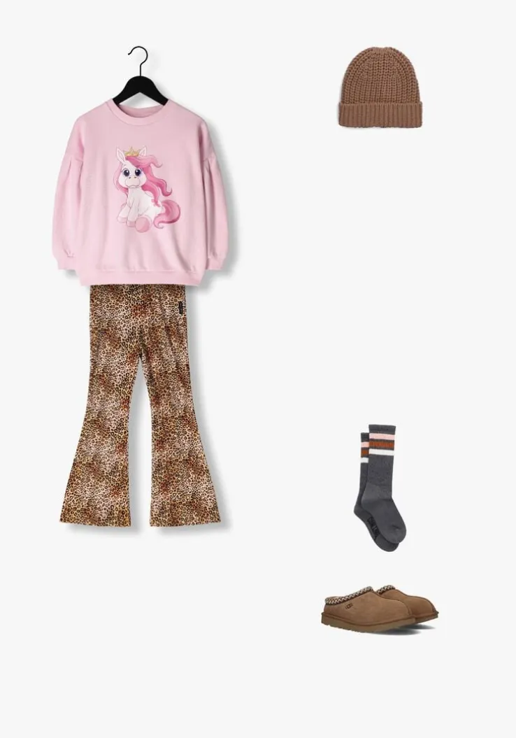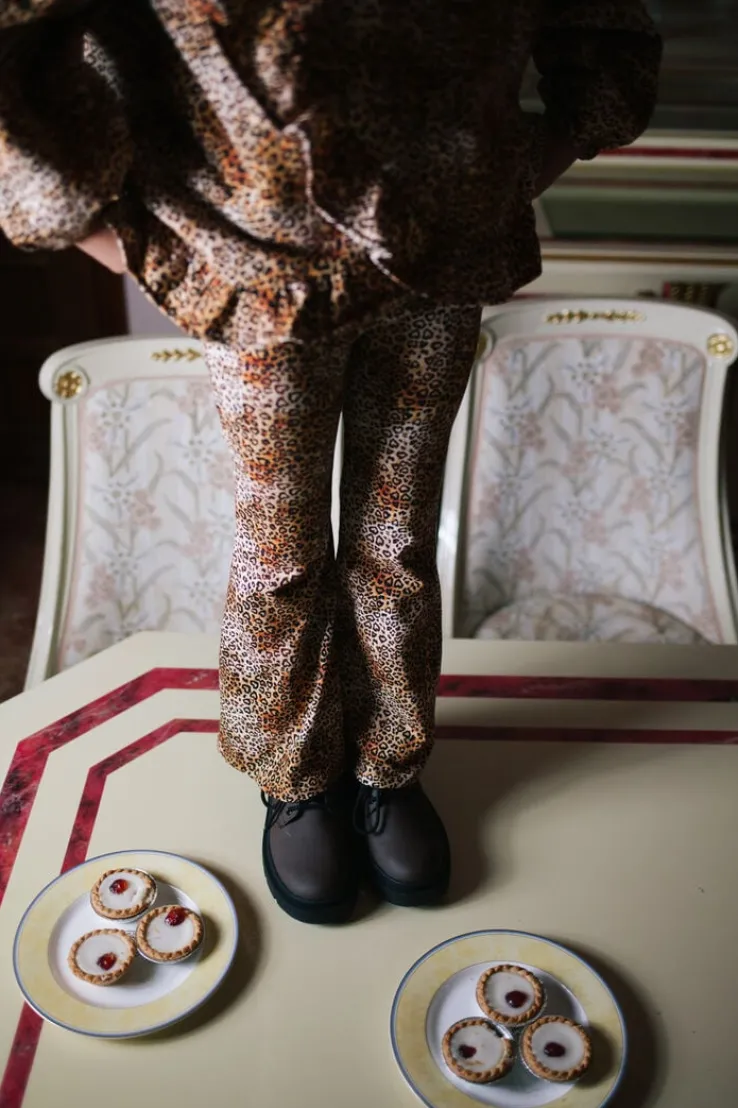 Laat je innerlijke fashionista stralen met de LEOPARD HEART FLARED PANTS van DAILY BRAT. Deze bruine flared broek is perfect voor meisjes die houden van een speelse en trendy look. De opvallende luipaardprint geeft elke outfit een stoere twist. De zachte stof en comfortabele pasvorm zorgen ervoor dat je de hele dag door kunt bewegen en genieten. Voeg deze must-have broek toe aan je garderobe en maak elke dag bijzonder.