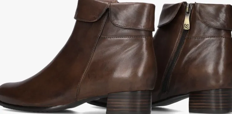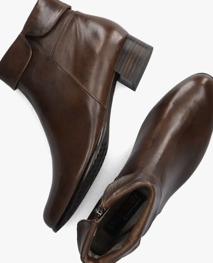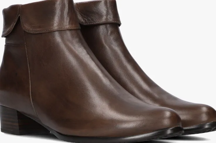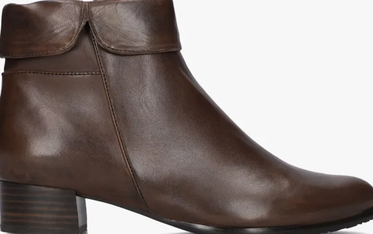 Enkellaars met flap voor dames van het merk Everybody. Deze enkellaars met ronde neus is uitgevoerd in bruin leer. De bovenzijde van de schacht heeft een omslag en de binnenzijde een rits om het aan- en uittrekken te versoepelen. De binnenzijde is uitgevoerd in vacht en een stevig contrefort draagt bij aan het loopcomfort. De rubberen zool heeft een medium profiel en de hak meet circa 3 cm