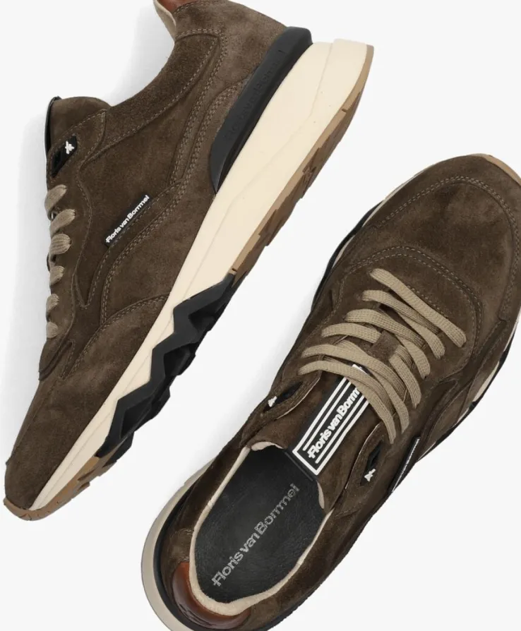 Uit de collectie van het Nederlandse merk Floris van Bommel is deze donkerbruine lage sneaker SFM-10136 met coole look.Deze sportieve sneaker heeft een bovenwerk van suède met meerdere overlays en een rubberen merklabel op de tong en zijkant. De hiel is voorzien van een cognackleurige leren hielcap met merkreliëf, de veters zijn gemaakt van katoen en onder de voorvoet is in de rubberen loopzool een zigzagaccent te vinden die hem niet alleen een stoere look geeft maar tegelijkertijd ook veel grip. Het binnenwerkis uitgevoerd in leer en heeft een uitneembaar voetbed. De sportieve zool met grof profiel is licht van gewicht en voelt comfortabel aan bij iedere stap. Combineer hem onder een stoere jeans voor een sportieve casual look.