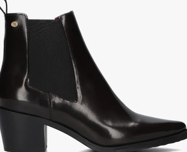 De perfecte combinatie van vrouwelijke en comfortabele pasvormen, dat is deze donkerbruine chelseaboot JOLIE CHELSEA van het merk Fred de la Bretoniere. Het bovenwerk isuitgevoerd in gladleer met een mooie glans en heeft een binnenwerk van leer met een vast voetbed.Door de handige aantreklus van leer op het bovenwerk in combinatie met de elastische zijpanelen trek je de boot gemakkelijk aan-en uit en zorgt dit ook voor een stoere look! De boot is afgewerkt met een goudkleurige merkstud op de schacht, heeft een puntige neus met brede zool en een gelaagde blokhak. De rubberen zool met luxe uitstraling heeft een hakhoogte van 6 centimeter en de schachthoogte is 16 centimeter, gemeten bij maat 38. Combineer ‘mbij ontelbare vrouwelijkeoutfits en klaar ben je!