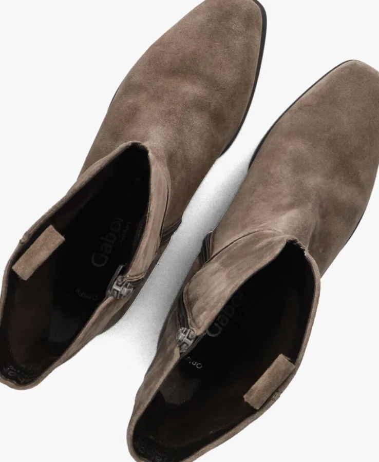 Stoer, vrouwelijk & comfortabel! Dat is deze bruine, halflange laars 672.1uit de Comfort collectie van het merk Gabor. Comfort schoenen hebben meer volume bij de tenen en bij de bal van de voet en bieden voor iedere voet de noodzakelijke ruimte. Dit model is uitgevoerd in zacht taupekleurig suède met een V-uitsnijding aan de voorzijde van de schacht en een aantreklus aan de zijkant. De westernhak,de spitse neus en de stiksels op de schacht zorgen voor die trendy city western look! Het laarsje heefteenbinnenvoeringvan zacht suèdelook met een uitneembaar voetbed en met de handige ritssluiting aan de binnenkant trek je ‘m eenvoudig aan en uit. Dit model heeft een normale G-wijdte en de rubberen zool met slijtvaste loopzool biedt grip en een hoog loopcomfort. Destabiele hak heeft een hoogte van 4 centimeteren de schachthoogte is 24centimeter, gemeten bij maat 38. Match zeonder jouw lievelingsbroek of -jurk en je bent klaar voor een nieuwe, mooie dag!