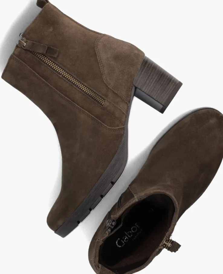 Stap stijlvol de dag in met deze prachtige bruine enkellaarzen van GABOR. Met hun suède buitenkant en ronde neus stralen ze elegantie uit. De blokhak van 6 cm zorgt voor een comfortabele en trendy look. De laarzen hebben een schachthoogte van 15 cm en sluiten gemakkelijk met een rits. De binnenkant is gemaakt van leer en textiel, wat zorgt voor een zachte en ademende ervaring. De rubberen zool biedt goede grip en duurzaamheid. Combineer deze enkellaarzen met een mooie jeans en een oversized trui voor een casual-chique look. Of draag ze onder een jurkje voor een vrouwelijke touch. Met deze GABOR enkellaarzen ben je altijd in stijl.