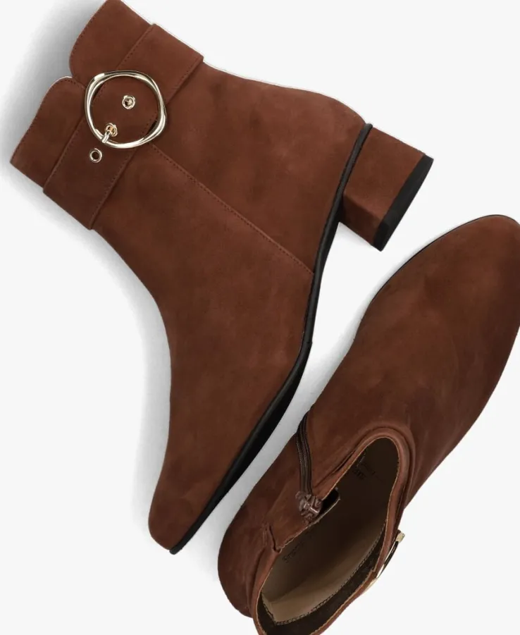 Deze mooie bruineenkellaars SIENAmet decoratieve gesp aan de schachtkomt uit de collectie van het luxe merkHassia. Dit model is uitgevoerd in zacht suède en heeft een elegante lage blokhak. De voering is gemaakt van leer en heeft een uitneembaar voetbed. Overigens kan je de laars ook zonder het inlegzooltje dragen dankzij het dubbele voetbed, ideaal voor als je voeten wat opzetten aan het eind van de dag. De rubberenzool heeft een gripvast profiel onder de loopzoolen de hak heeft een hoogte van 4centimeter. De schachthoogte is 16 centimeter, gemeten bij maat 38. Geef elk outfit eenglamoroustouch met deze toffeenkellaarsjes!