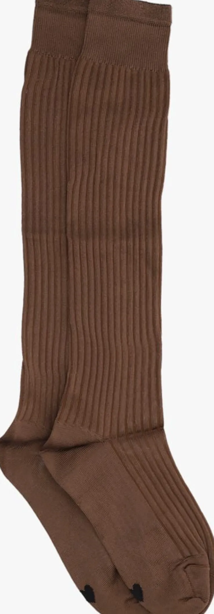Met deze unieke sokken van het merk MARCMARCS heb je comfortabele fashion aan je voeten! Deze bruine kniekousen JOY voelen zacht aan, hebben een ultiem draagcomfort en geven lekker veel warmte. Ze zijn voorzien van een gestreept reliëf en een glanzende finish. De sokken zijn geproduceerd in Italië van hoogwaardige materialen en zien ze er fantastisch uit in je boots of enkellaarsjes! Doordat zehandgeketteldzijn voel je de naden niet zitten en dat zorgt voor een prettig draagcomfort. Materiaal: 80% viscose, 15% polyamide en 5%elastaan