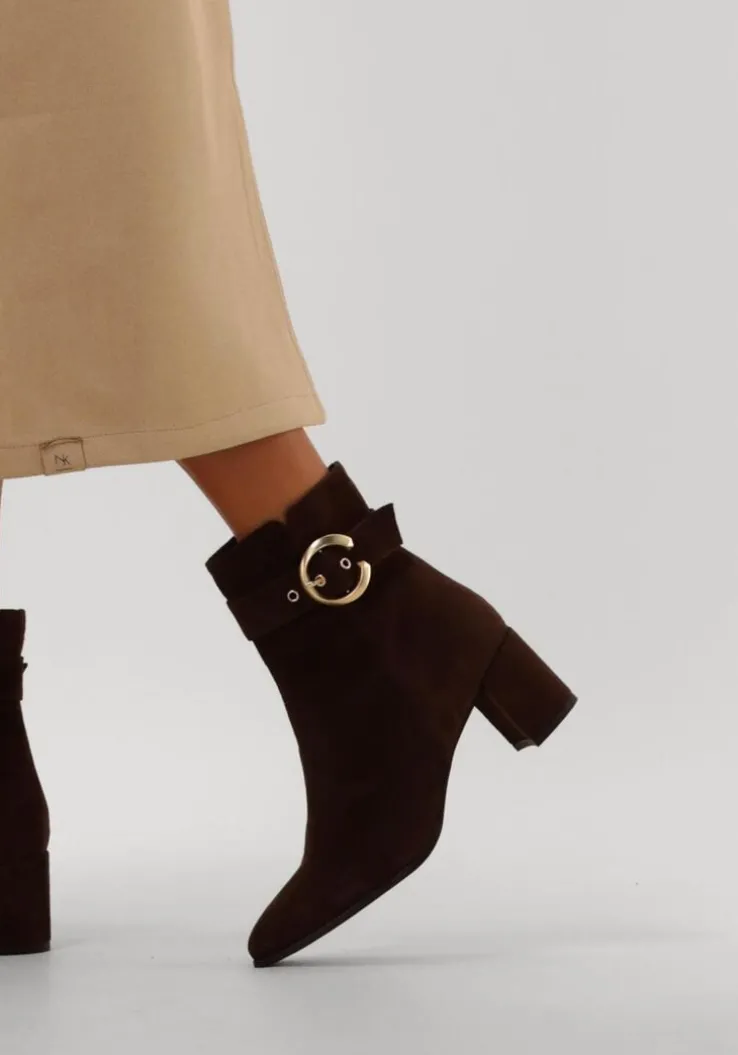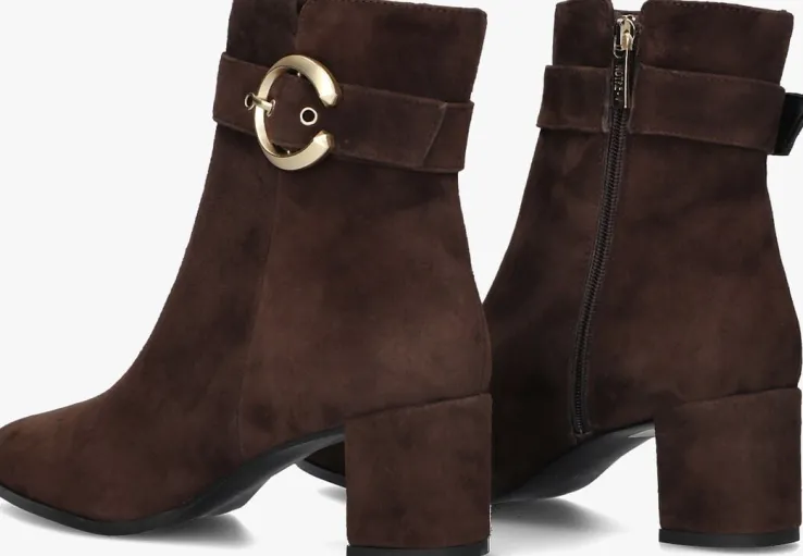 Stap stijlvol de dag in met de zwarte enkellaarzen 8552 van NOTRE-V. Deze elegante schoenen zijn perfect voor een dag op kantoor of een avondje uit. Het bovenwerk bestaat uit bruin leer met een goudkleurige siergesp rondom de schacht. Combineer ze moeiteloos met een jeans of een chique rok voor een verfijnde look. De zachte buitenkant geeft een luxe uitstraling, terwijl de stevige blokhak zorgt voor comfort en stabiliteit. Of je nu een zakelijke meeting hebt of een diner met vrienden, deze enkellaarzen zijn jouw go-to keuze. Voeg een vleugje klasse toe aan je garderobe met deze veelzijdige en tijdloze schoenen.