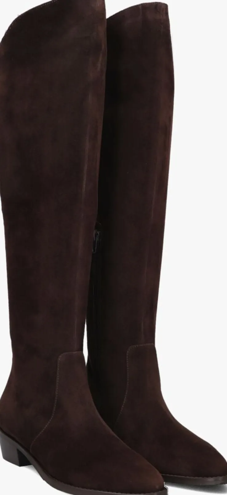 Stap stijlvol de dag in met deze elegante hoge laarzen van NOTRE-V. Gemaakt van bruin suède, bieden deze laarzen niet alleen een chique uitstraling, maar ook ultiem comfort dankzij de leren binnenkant. De puntige neus en de stevige blokhak van 4 cm geven je een verfijnde look, perfect voor een dag op kantoor of een avondje uit. Met een schachthoogte van 43 cm en een rubberen zool, zijn deze laarzen ideaal te combineren met een strakke jeans of een stijlvolle rok. Voeg een vleugje klasse toe aan je garderobe met deze tijdloze laarzen.