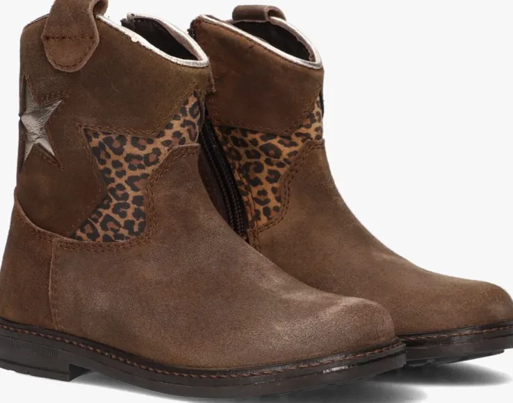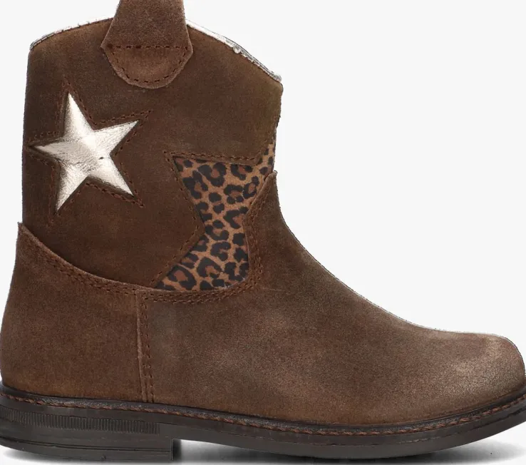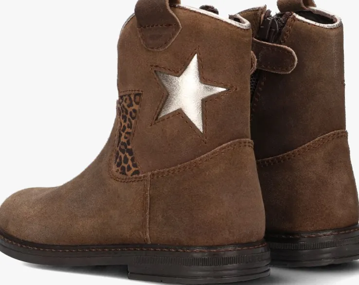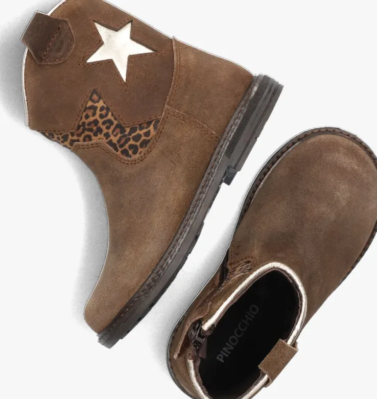 Met deze bruine enkellaarzen van PINOCCHIO ben jij helemaal on-trend! Dit model heeft een bovenwerk van hoogwaardig suède met fraai stikwerk en de schacht is voorzien van een zilverkleurige ster en een halve ster met panterprint voor een echte meid! Dit model heeft cowboy accenten, zoals de afgeronde schacht en de suède aantreklus. Je trekt dit model razendsnel aan dankzij de ritssluiting aan de binnenzijde. De laars is leer gevoerd en het uitneembare voetbed zorgt voor extra comfort, terwijl de rubberen zool zorgt voor een goede grip. De schachthoogte van 12 centimeter geeft deze laarzen een speelse uitstraling. Combineer ze met een stoere jeans en een oversized trui voor een casual look, of draag ze onder een jurkje voor een girly touch. Met dit model ben jij klaar voor elke gelegenheid!