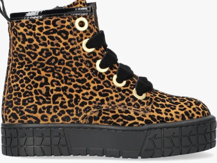 Een stoere meid verdient een stoere veterboot. Ga voor deze leuke veterboots P1460 uit de collectie van het merk PINOCCHIO. De buitenkant is gemaakt van bruin velvet met een zwarte dierenprint, heeft goudkleurige veterringen, velvet brede zwarte veters. Het binnenwerk is leer gevoerd met een uitneembaar voetbed en dankzij de ritssluiting naast de vetersluiting trek je ‘m gemakkelijk aan en uit. Ook de rubberen zool heeft een opvallend uiterlijk dankzij het reliëf patroontje in de zoolrand. Ook is de zool wat dikker dan gebruikelijk waardoor het een heel trendy sneakertje is geworden. Het gripvaste profiel zorgt voor een goede grip en stabiliteit.
