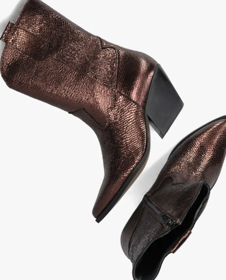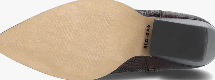 Loop er dit seizoen super trendy bij met deze cowboylaars 77416 van het merk Red-Rag. Dit model is uitgevoerd in bruin leer met een glanzende reptielenprint en een metallic afwerking. Een opvallend detail is het stikwerk op de schacht, de lus aan de buitenzijde en de uitgesneden voorkant. De puntige neus en hak van ruim 7,5 centimeter hoog maken deze laars elegant en door de handige ritssluiting aan de zijkant schiet je ‘m supersnel aan. De binnenvoering bestaat uit zacht leer en het voetbed is niet uitneembaar. De schachthoogte is 23 centimeter (gemeten bij maat 38). Draag deze stoere laarzen onder een jurk of rok en je steelt de show!