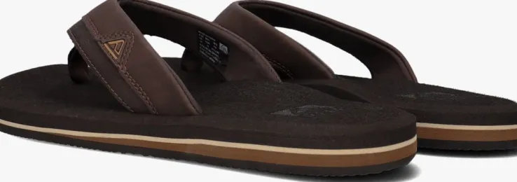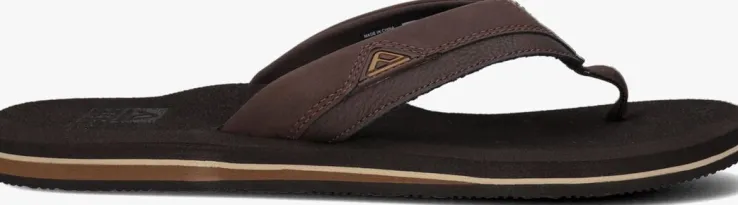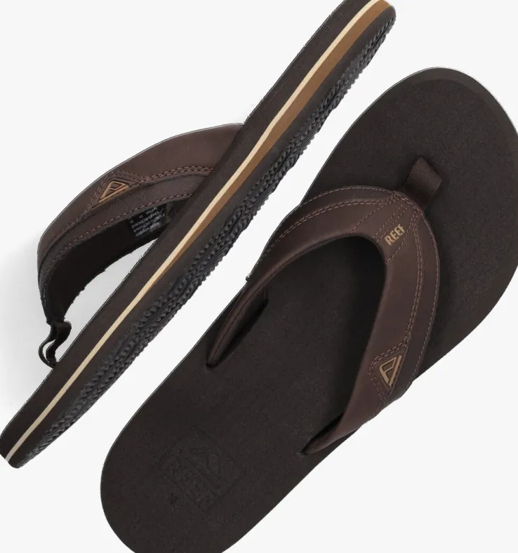 Met deze slipper CUSHION DAWN uit de collectie van het merk Reef ervaar je een hoog draagcomfort. Dit bruine model heeft een watervriendelijke band van vegan leer met een gewatteerde jersey voering en een teenstuk van textiel. Het EVA-voetbed is voorzien van een ingebouwde airbag die ervoor zorgt dat de slippers extra fijn lopen. De flexibele, rubberen zool maakt de slipper perfect om mee over het strand te struinen. Ook leuk: de slipper heeft op de band toffe stiksels, een merkembleem aan de buitenbeenzijde en een merkopdruk in het midden.