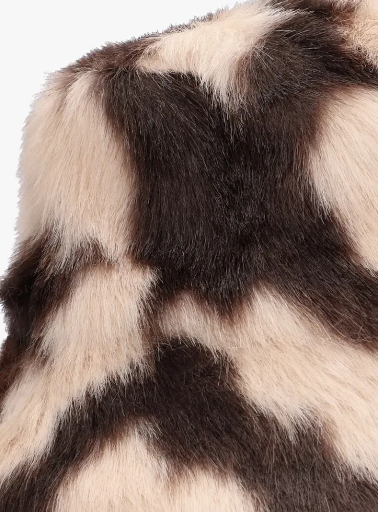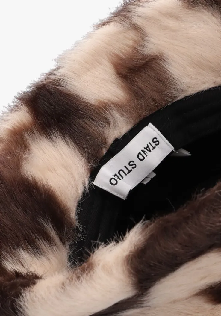 Hoe fluffy is deze buckethat WERA BUCKET HAT van het merk STAND STUDIO! Het bovenwerk bestaat uit zacht faux fur in een ecru kleur met diverse bruin tinten en heeft een toffe uitstraling.
