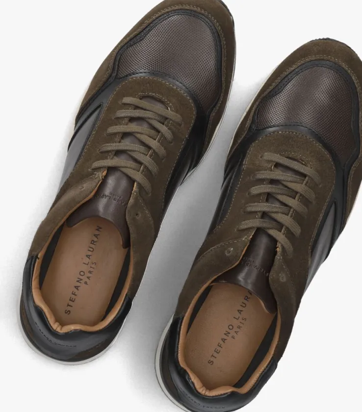 Ontdek de stijlvolle bruine leren sneakers van STEFANO LAURAN, model SL124H610. Deze lage sneakers met ronde neus zijn perfect voor heren die comfort en stijl willen combineren. De sneaker heeft een overlays van bruin en blauw leer met groen suède panelen. Dankzij het uitneembare voetbed en de leren binnenkant geniet je van ultiem draagcomfort. De stevige rubberen zool zorgt voor grip tijdens een wandeling door de stad of een casual dag op kantoor. Combineer deze sneakers moeiteloos met een nette jeans of een chino voor een moderne look. De vetersluiting geeft een klassieke touch aan deze veelzijdige schoenen. Voeg een vleugje elegantie toe aan je dagelijkse outfit met deze tijdloze sneakers.