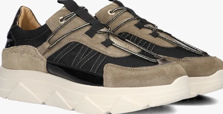 Stap stijlvol de deur uit met de KADY FAT 429 lage sneakers van TANGO. Deze zwarte met taupe kleurige sneakers hebben een overlays van leer, suède en textiel met goudkleurige details. De ronde neus, glitter en goudkleurige panelen en ronde vetersluiting zijn perfect voor een dagje shoppen of een ontspannen wandeling in het park. De leren binnenkant zorgt voor ultiem comfort, terwijl de stevige witte rubberen zool je de hele dag door ondersteunt. Combineer deze veelzijdige sneakers met een strakke jeans en een casual blouse voor een moeiteloze, trendy look. Of draag ze onder een zomerse jurk voor een speelse twist. Met de KADY FAT 429 ben je altijd klaar voor elke gelegenheid.