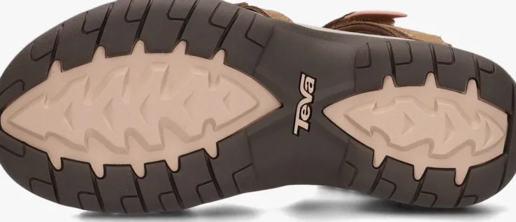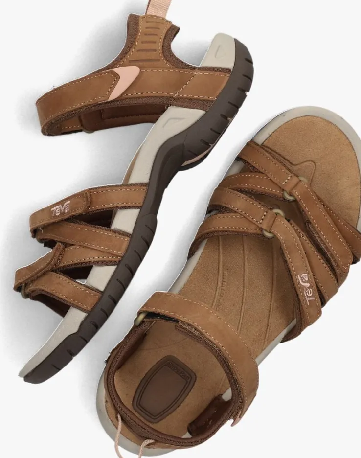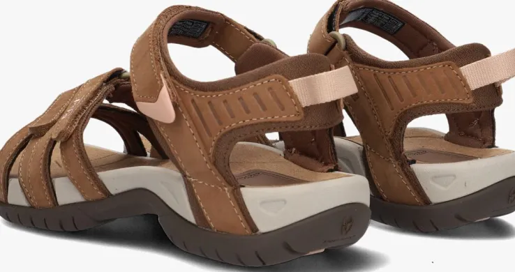 Ga op avontuur met deze extreem comfortabele W TIRRAsandaal van het outdoormerk TEVA! De speelse bandjes over de voorvoet hebben een bruine kleur en zijn gemaakt van nubuckleer. Extra tof zijn de lichtroze details, zoals het uiteinde van het enkelbandje, het merkembleem op de wreef en de aantreklus op de hiel. Het enkelbandje is erg stevig en is voorzien van een klittenbandsluiting, net zoals de andere twee bandjes op de voorvoet. De zool heeft een hoge flexibiliteit voor een goede afwikkeling van de voet. De bandjes zijn textiel gevoerd en het zachte voetbed heeft een suèdelook toplaag met een rubberen afwerking. De rubberen zool heeft vanzelfsprekend een grof profiel voor veel grip bij die avontuurlijke wandeling in de bergen of door de stad!