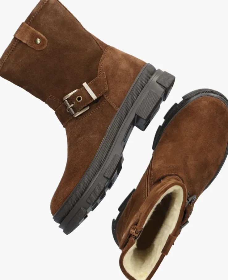 DitenkellaarsjeLUNT komtuit de collectie van het nieuwe merkTON & TON en islief en stoer tegelijk. Ton & Ton zorgt ervoor dat opgroeiende kids stevige schoenen kunnen dragen. De schoenen zijn gemaakt van soepele materialen, zodat kids zorgeloos kunnen ravotten. Dit model is aan de buitenkant gemaakt van bruin suède en de binnenkant is gevoerd met zacht faux fur, zodat je altijd warme voetjes hebt. De stoere look krijgt ditlaarsje dankzij de zilverkleurige gesp en de rubberen zool met gripvast profiel. Dankzij de handige ritssluiting aan de zijkant van de laars trek je ‘m gemakkelijk aan en uit. De laars is leer gevoerd en beschikt over een uitneembaar voetbed. De schacht is 13,5 centimeter gemeten bij maat 27. Combineer ‘m onder een stoere jeans of een lief jurkje, het kan allemaal!