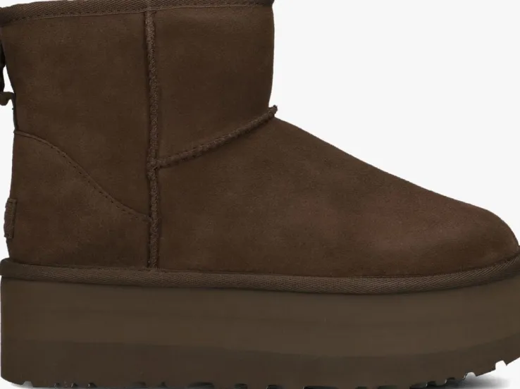 De W CLASSIC MINI PLATFORMis een van de meest geliefde en legendarische modellen van het merk UGG!Deze bruine enkellaars is gemaakt van suède en heeft een heerlijk zacht binnenwerk van UGGplush™materiaal, wat is gemaakt van 80% wol en20% plantaardig lyocell voor een extra zacht en duurzaam karakter. Het voetbed is niet uitneembaar.DeTreadlitebyUGG™ plateauzool van 6 centimeter geeft je nog meer lengte, comfort, demping en grip en is superlicht van gewicht. De hiel is voorzien van het welbekendesuède merklabel en aantreklus. De schacht heeft decoratieve opstaande naden.Deze veelzijdige laarsjeslaten zich gemakkelijk met vrijwel alles combineren. Probeer eens een losse boyfriend jeans met een fluwelen top of zelfs een zwierige maxi-jurk.