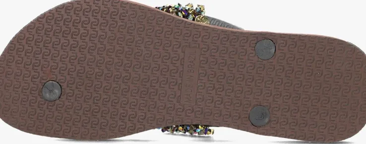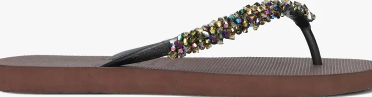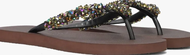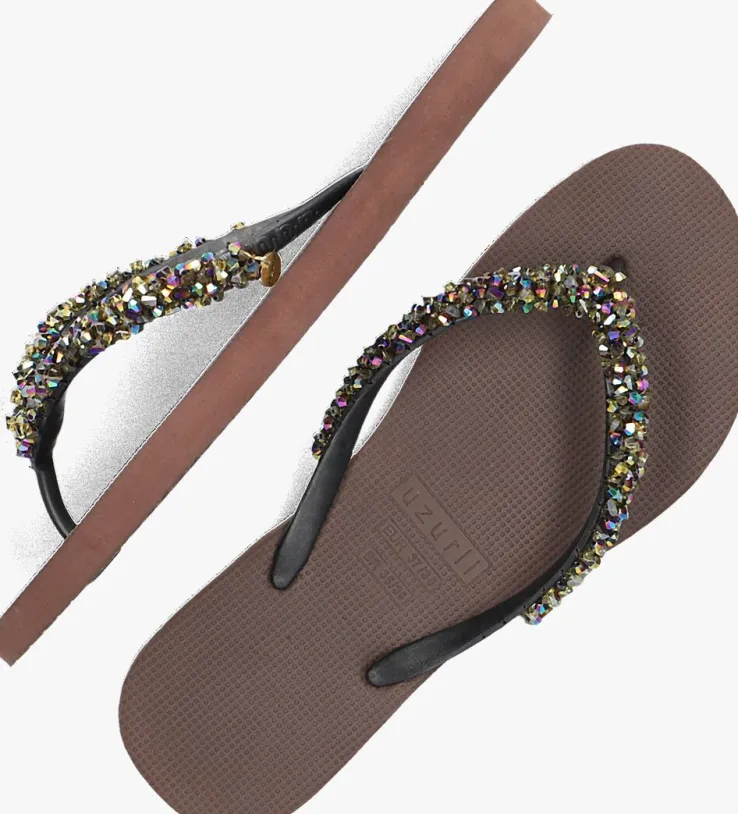 Deze bruine ABI slipper uit de collectie vanluxurymerk Uzurii is een ware eyecatcher om al die stranden en drukke boulevards mee af te struinen! De producten van dit Nederlandse modemerk zijn stuk voor stuk handgemaakt met speciale technieken en grote toewijding. Deze luxe slipper is uitgevoerd in hoogwaardig rubber en heeft prachtigestrass-stenen in holografische kleuren op de wreefband. De schoenendoos waar deze mooie slippers in worden geleverd heeft een luxe afwerking enaan ze binnenzijde voorzien van een spiegel. Na gebruik kanje ‘m dus gebruiken als handig make-up of sieradenopbergdoos.