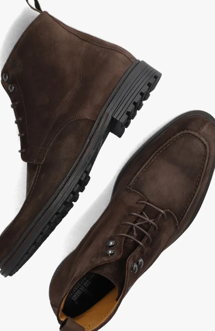 Deze bruine veterboot SBM-50041is van het merk Floris van Bommel. Ditmodel is uitgevoerd in hoogwaardig suède met toffe accenten, zo is de voorvoet afgewerkt met een opstaande neusrand, heeft de schacht dubbele stiksels, de metalen veterlusjes maken de schoenen net wat opvallender en op de bovenzijde van de schacht is een subtiel logo te vinden. De schoen heeft een leren binnenvoering en een comfortabel, uitneembaar voetbed. De schoen sluit met ronde, smalle veters van gewaxt katoen en trek je gemakkelijk aan met behulp van de textiel aantreklus. Dit model heeft een rubberen zool met een gripvast profiel voor extra stevigheid en comfort. Dit is een stoere boot waar je alle kanten mee op kunt!