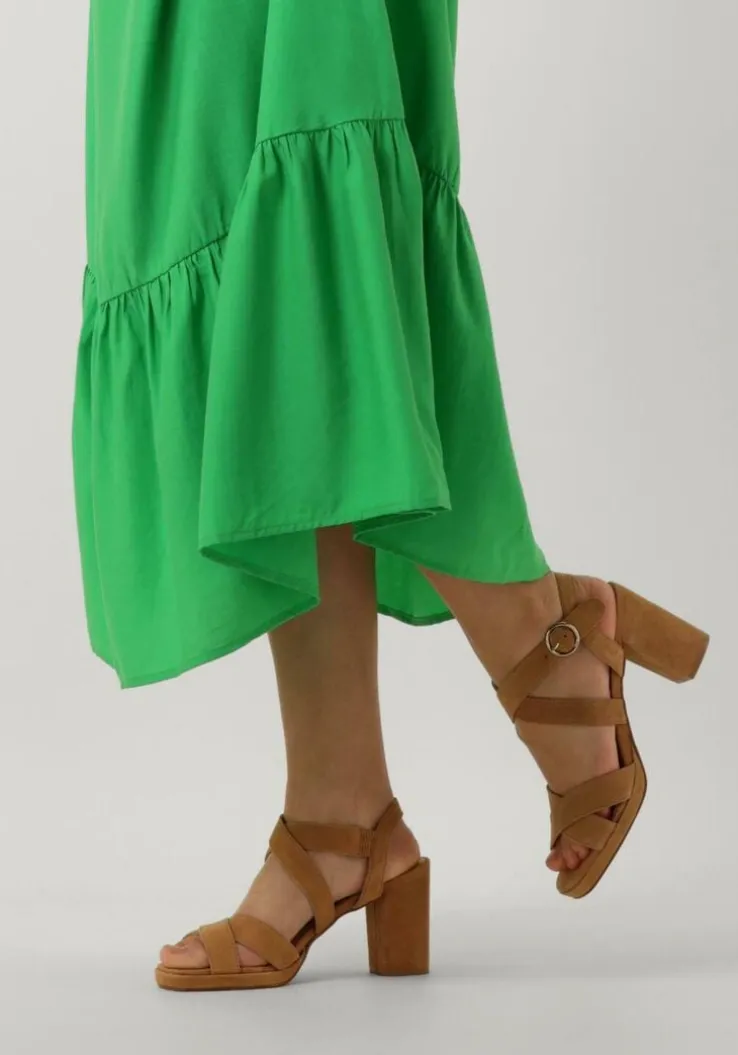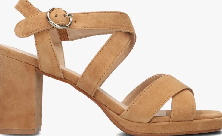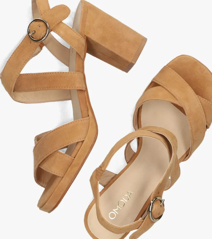 Te gek! Deze toffe sandalen met hak ISLA 02 zijn van het merk OMODA. Dit opvallende model is gemaakt van camelkleurig suède, heeft gekruisde banden over de voorvoet en wreef en is voorzien van een goudkleurige gespsluiting rondom de enkel, zodat je ‘m goed passend kunt maken. De beklede blokhak is ruim 8 centimeter hoog en dit is de ideale hoogte om het zeker een dag of nacht op vol te houden! De sandaal heeft een leren voering en het voetbed is ook afgewerkt met een leren toplaag. De kunststof haktip zorgt samen met de rubberen loopzool voor voldoende grip, steun en stabiliteit. Perfect te combineren met een mooie pantalon of onder je favoriete jurkje!