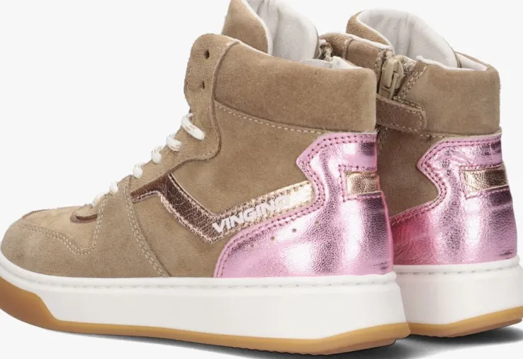 Op zoek naar een comfortabele, handige en mooie sneaker? Dit model SENNE MIN PREMIUM van het merk VINGINO vinkt het hele wensenlijstje af! Deze hoge sneaker is gemaakt van suède in de kleur camel met roze en bronzen, metallic accenten. Leuke details zijn het stiksel in de zoolrand, de gemêleerde veters, het merklabel op de tong, de merkopdruk op de zijkant en de perforaties op de neus en hiel. Kinderen trekken de sneaker snel en eenvoudig aan door de handige ritssluiting aan de zijkant. Het binnenwerk is gemaakt van leatherlook en heeft een uitneembaar voetbed. De flexibele, rubberen zool zorgt voor een goede afwikkeling van de voet en heeft een lijntjesprofiel voor voldoende grip. Klaar voor avontuur? Met deze gave sneakers zit je goed!