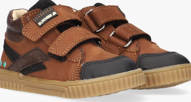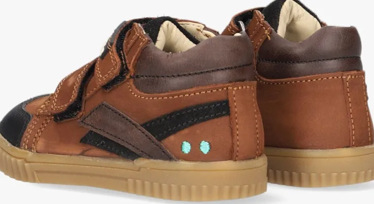 Deze cognac kleurige hogesneaker ERIC EERLIJKkomt uit de collectie van het merk BUNNIES JR. Dit bijzonder flexibele schoentjeheeft een leren bovenwerk met zwarte accenten en een dubbele klittenbandsluiting met rubberen merklabel. Op de zijkant zijn de herkenbare stipjes in het mintgroen te vinden en de zwarte rubberen neus beschermtde teentjes en het leer tegen beschadigingen. De zwarte suède tong is gewatteerd en voelt comfortabel aan op het voetje. Het binnenwerk is van leer en met hetuitneembarevoetbed kun je goedzien of je kindje de juiste maat draagt. De amberbruine zool met geribbelde zoolrand is gemaakt van rubber en heeft een gripvast ruitjesprofiel.