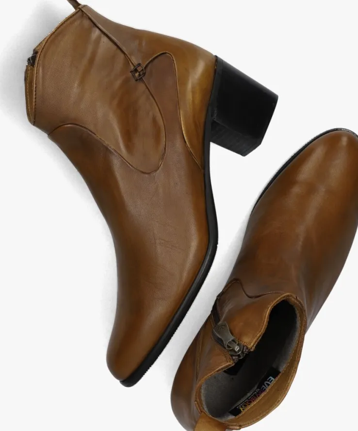 Enkellaars voor dames van het Italiaanse merk Everybody. Deze klassieke enkellaars met ronde neus is uitgevoerd in cognac leer en heeft een afgeronde schacht. De rits aan de binnenzijde helpt het aan- en uittrekken te versoepelen. De binnenzijde van deze enkellaars is volledig uitgevoerd in leer. De rubberen zool heeft een grof profiel voor stevige grip. De hakhoogte bedraagt circa 5 centimeter.