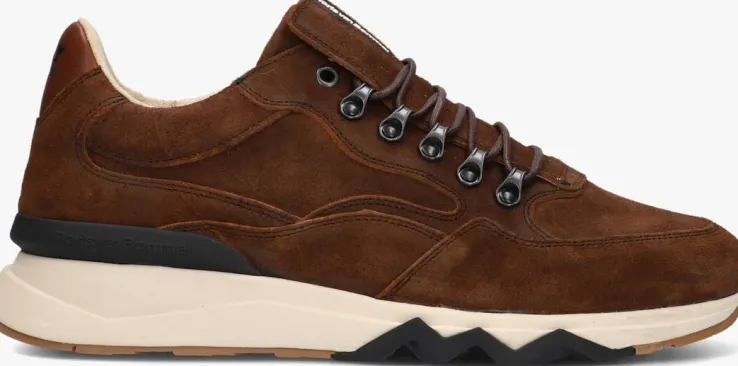 Uit de collectie vanhet Nederlandse merk Floris van Bommel is deze cognackleurige lage sneaker SFM-10135 van zijdezacht suède en heeft verschillende panelen.Het bovenwerk heeft een sportieve belijningen, een dubbele tong met zwart rubber merklabel en donkere metalen hiking-veterringen. Daarnaast heeft deze toffe sneaker een merkreliëf op de zwarte hielstabilisator en zwarte gekartelde lijnen in de tussenzool. De schoen is gevoerd metleer envoorzien vaneen uitneembaar, dempend voetbed. Dit model heeft een iets bredere G+-wijdte eneenAGO-maakwijze, waarbij het bovenwerk over de binnenzool wordt getrokken en vastgezet. Vervolgens wordt de onderkantopgevuld met flexibel kurk en daar wordt onder hoge druk de zool op geperst.De bruine loopzool zorgt samen met het gripvaste profiel voor een speelse finishingtouch en een goede grip. Combineer deze topper onder een mooie jeans voor een sportieve, stijlvolle look.