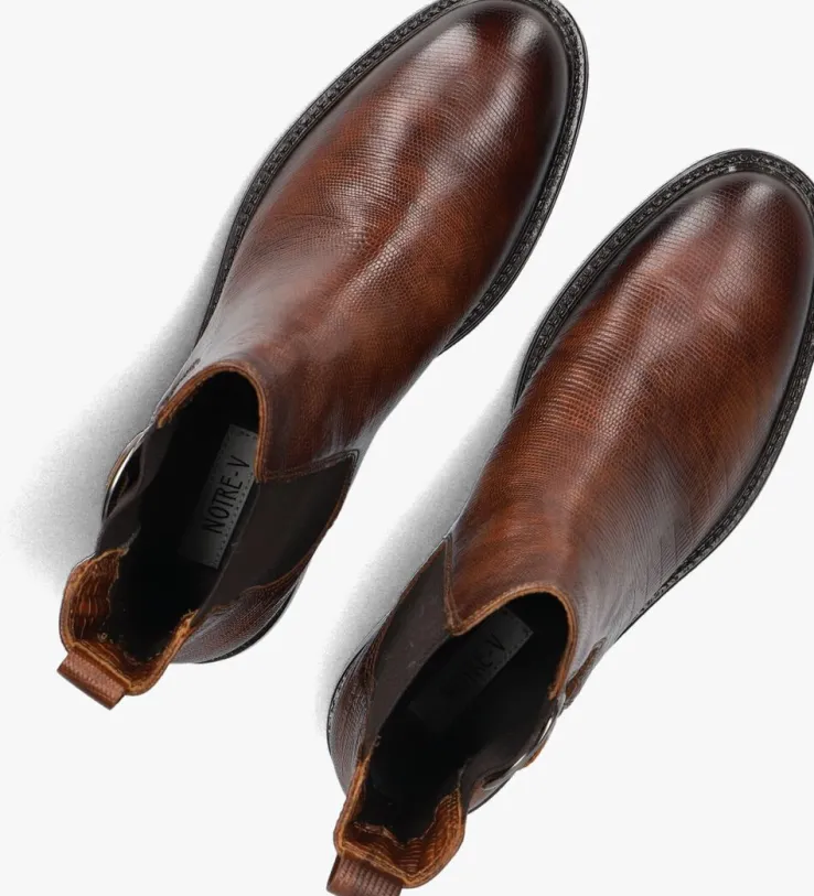 Ontdek de stijlvolle cognac Chelsea boots, model 2SAINT220 van het merk NOTRE-V. Deze leren boots zijn perfect voor dames die houden van een tijdloze en veelzijdige look. De zijkanten zijn afgewerkt met elastische panelen voor een trendy look en een gemakkelijke look. Ook heeft dit model een aantreklusje en een siergesp. Draag ze tijdens een ontspannen stadswandeling of een gezellige lunch met vrienden. De warme cognac kleur combineert moeiteloos met een jeans of een elegante midi-rok.