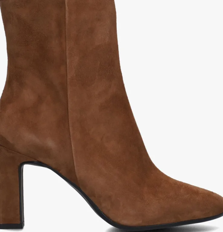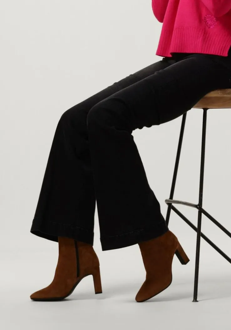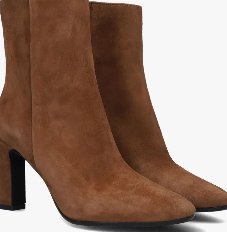 Ga voor een chique look met deze enkellaars 11236 van het toffe merkNOTRE-V!Dit modelheeft een bovenwerk van hoogwaardig suède in een mooie, cognackleurige kleur. De laars heefteen rechte schacht met een handige ritssluiting aan de binnenzijde om ‘m gemakkelijk aan en uit te trekken. Opvallend detail is de naar binnen gestikte naad aan de schacht en de goudkleurige ritshanger met merkreliëf. Verder heeft dit item een trendy neus met een smalle, beklede blokhak van zo’n 9 centimeter hoog. Het binnenwerk bestaat uit zacht leer in combinatie met leatherlook dat comfortabel aanvoelt aan je voeten en de schoen heeft een vast voetbed. De kunststof loopzool geeft de laars een mooi afgewerkt geheel en met het fijne lijntjesprofiel heb je een goede grip. Deschacht is 14 centimeter hoog, gemeten bij maat 38. Draag de schoenen elegant onder eenjurkje of stoer onder een jeans!