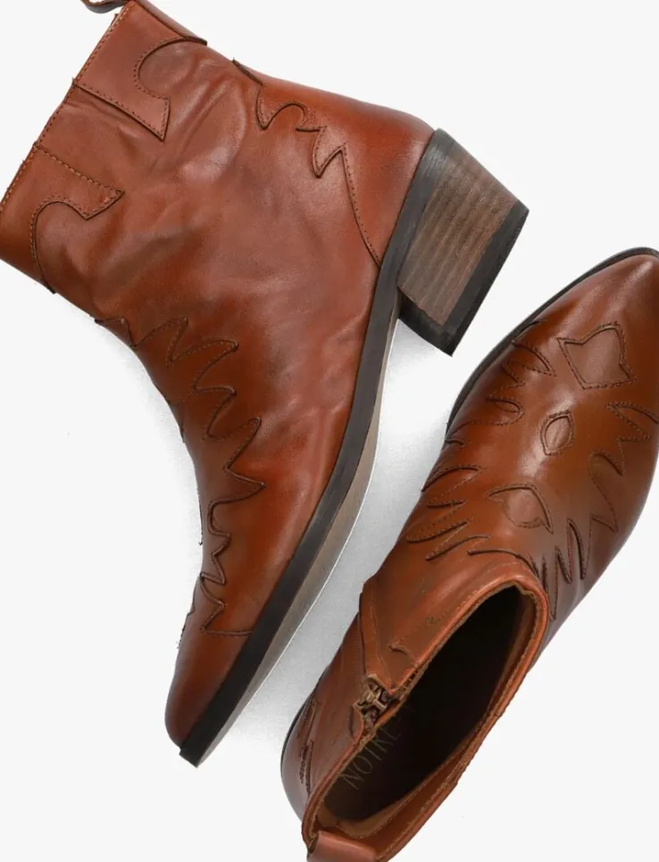 Ontdek de veelzijdigheid van de 18060 enkellaarzen van NOTRE-V. Deze cognackleurige laarzen zijn perfect voor dames die stijl en comfort willen combineren. Het bovenwerk bestaat uit gladleer en heeft opgestikte patronen. Ook heeft dit model cowboy accenten, zoals de lichtpuntige neus, de schuine blokhak met houtlook en de stiksels op de voorvoet. De leren binnenkant zorgt voor een ademend gevoel, terwijl de rubberen loopzool zorgt voor grip en stabiliteit. Dankzij de ritssluiting trek je dit model razendsnel aan. Met een hakhoogte van 4 centimeter zijn deze laarzen ideaal voor dagelijks gebruik. Draag ze met een skinny jeans voor een casual look of combineer ze met een jurk voor een chique uitstraling. Of je nu naar kantoor gaat of een avondje uit, deze enkellaarzen zijn de perfecte keuze!