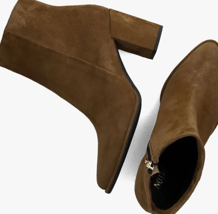 De schoenen van het merk NOTRE-V zijn tijdloos, maar met een knipoog naar de laatste trends. Deze fijne enkellaars 67034 is daar een mooi voorbeeld van. Dit model is uitgevoerd in cognackleurig suède en heeft subtiele details die dit rustige design trendy maken, zoals de spitse neus, de beklede blokhak en de goudkleurige ritshanger met merkreliëf. De blokhak is 8 centimeter hoog en de schachthoogte is 13centimeter, gemeten bij maat 38. Het binnenwerk is gemaakt van leatherlook ik combinatie met een vast, leer voetbed. De rubberen loopzool heeft een gripvast profiel dat zorgt voor veel stabiliteit bij iedere stap. Een trendy schoen die je makkelijk combineert!
