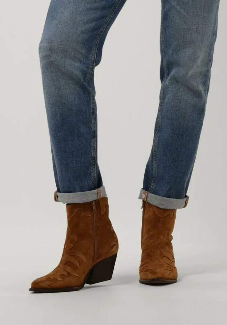 Een mooienkellaarsje isonmisbaar in je schoenenkast! Dit cognackleurige model AR196 met city western invloedenis van het merk NOTRE-Ven maakt al jouw outfits af! Het laarsje is gemaakt vanzacht suède en heeft eenbinnenwerk van leer met een vast voetbed met dempende schuimlaag. De schacht sluit mooi aan op de enkel en kan worden geopend met een handige rits. Dit laarsje heeft niet alleeneen prettig loopcomfort, maar benadrukt ook de stoerecowboy-look in jouw favoriete outfit, want de opgestikte patronen, de puntige neus en de gelaagde blokhak makenhet plaatje compleet.De hakhoogte is 7centimeter en deschachthoogte is 13centimeter, gemeten bij maat 37. Draag ‘m met een zwierige jurk of een stoere jeans!