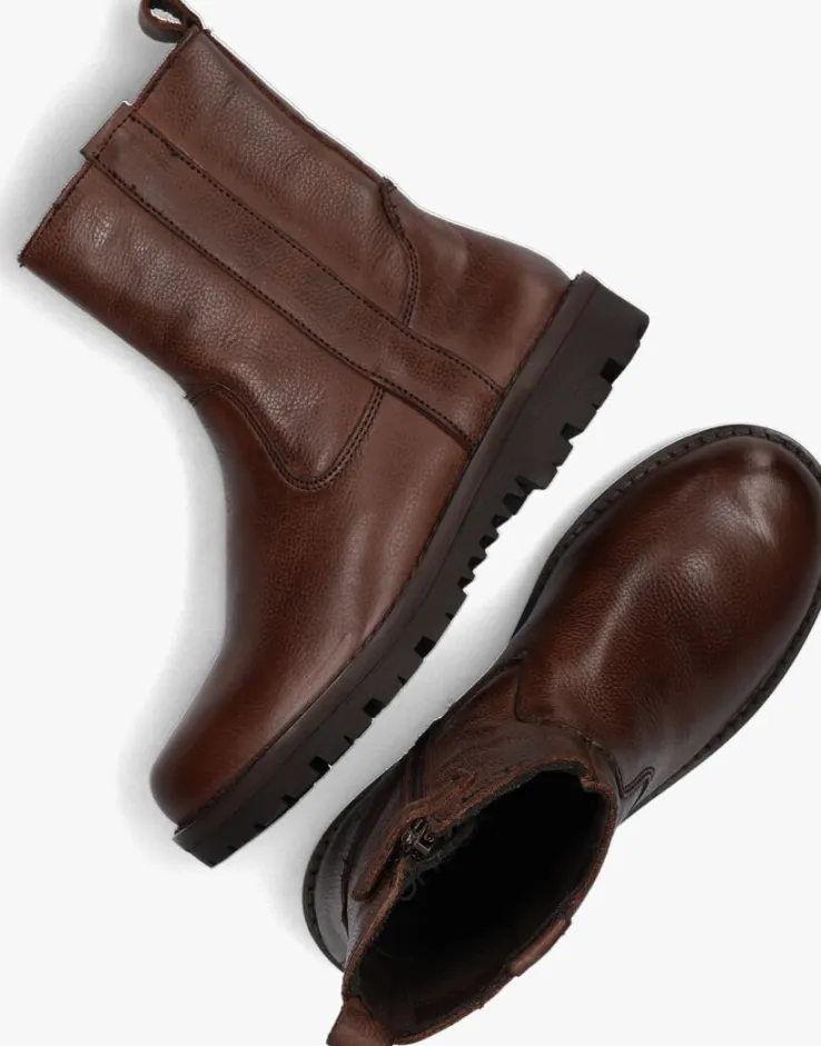 Deze stoere enkelboots in de kleur cognac zijn perfect voor jongens die er trendy bij willen lopen. Gemaakt van hoogwaardig leer, zorgen ze voor een stijlvolle uitstraling. De stiksels, de aantreklus en de chunky zool geeft de boots een speels karakter. Met de handige ritssluiting trek je ze gemakkelijk aan en uit. De rubberen zool zorgt voor een goede grip tijdens het spelen en rennen. De boots passen goed bij een casual outfit, zoals een jeans en een stoer shirt. Of combineer ze met een chino en een nette blouse voor een meer geklede look. Met deze boots ben je helemaal klaar voor avontuur!