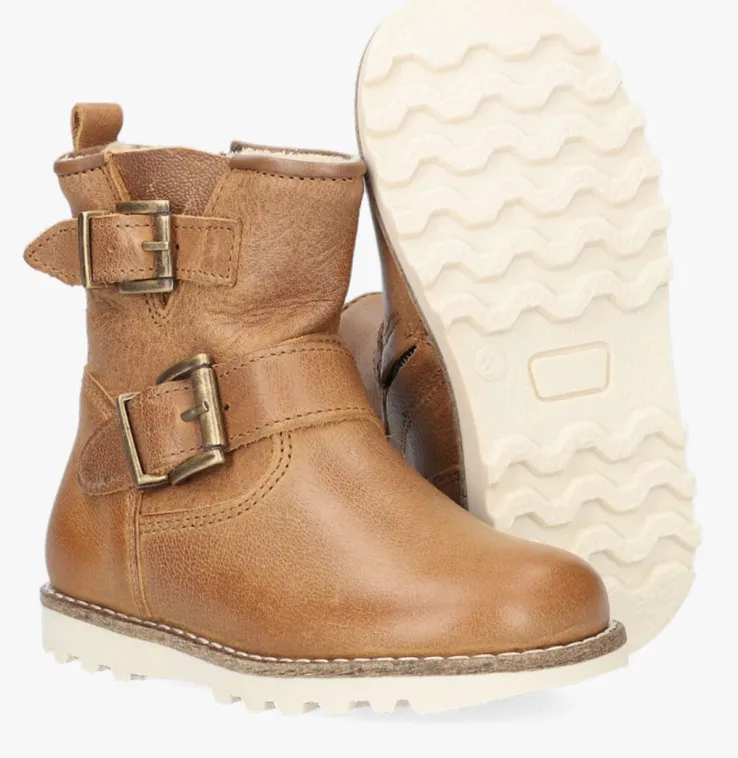 Met een paar biker boots geef jij ieder outfit een stoere finishing touch. Dit model P2124 komt uit de collectie van het merkPINOCCHIO en is gemaakt van cognackleurig leer. Over de wreef is een bandje bevestigd en aan de schacht prijken twee metalen siergespen. Voor het gemakkelijk aan- en uittrekken is de boot voorzien van een ritssluiting. Het binnenwerk heeft een voering van vacht met een uitneembaar voetbed. De rubberen zool met grof profiel en extra stootrandje rondom past perfect bij het stoere uiterlijk en zorgt ook nog eens voor een goede stevige grip.