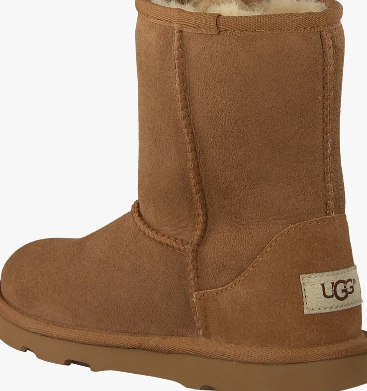 Ook dit seizoen loopt jouw zoon of dochter er trendy bij op deze korte laarsjes CLASSIC II KIDS. Dit klassieke model met stikselsis gemaakt van cognackleurigsuède en heefteen voering van heerlijk zacht en warm schappenvacht. Dit hippe item van UGG herken je aan het merklabel op de hiel en de profielzool. De zool is gemaakt van rubber en heeft een grof profiel.