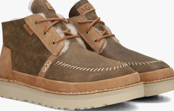 Stap stijlvol de herfst in met deze UGG enkelboots voor heren. De M NEUMEL CRAFTED REGENERA is uitgevoerd in een prachtige cognac kleur, perfect voor het najaar. Met de vetersluiting, grove vormgeving en opvallend bovenwerk geven deze boots een stoere uitstraling aan elke outfit. Het bovenwerk bestaat uit waterbestendig, zacht leer in een bruine kleur met panelen van suède. Het materiaal aan de binnenkant bestaat uit warme wol en textiel, waardoor je voeten lekker warm blijven op koude dagen. Extra tof zijn de ronde veters, de metalen veterringen en het grove stiksel op de voorvoet. De rubberen zool zorgt voor een goede grip. Combineer deze enkelboots met een jeans en een warme trui voor een casual look. Ga op avontuur of maak een ontspannen wandeling in stijl!