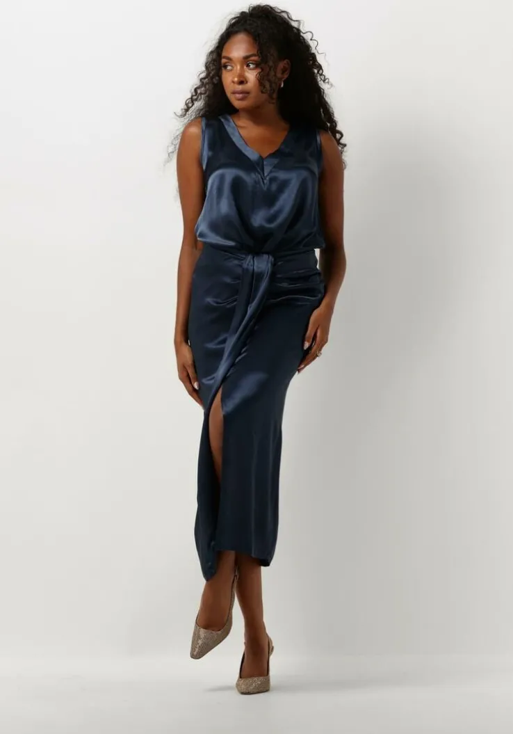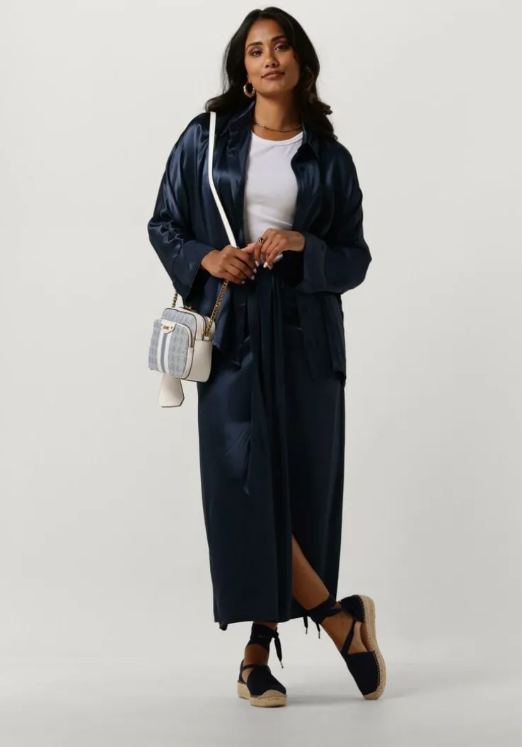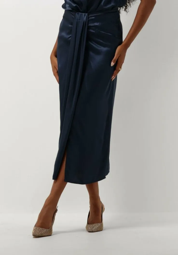 Met de 120012 midirok van GREEK ARCHAIC KORI straal je stijl en klasse uit. Deze donkerblauwe rok is gemaakt van satijn, waardoor hij een luxueuze uitstraling heeft. De half lange rok heeft een split aan de voorzijde, voor een speels effect. Combineer deze rok met een mooie blouse voor een chique look, of draag hem met een casual T-shirt voor een meer ontspannen uitstraling. Of je nu naar een feestje gaat of een dagje uit met vriendinnen, deze rok is perfect voor elke gelegenheid. Voel je zelfverzekerd en vrouwelijk in deze prachtige rok.