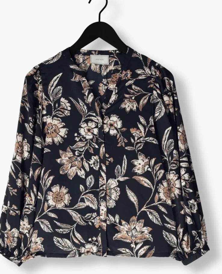 donkerblauwe neo noir blouses nani canvas flower blouse