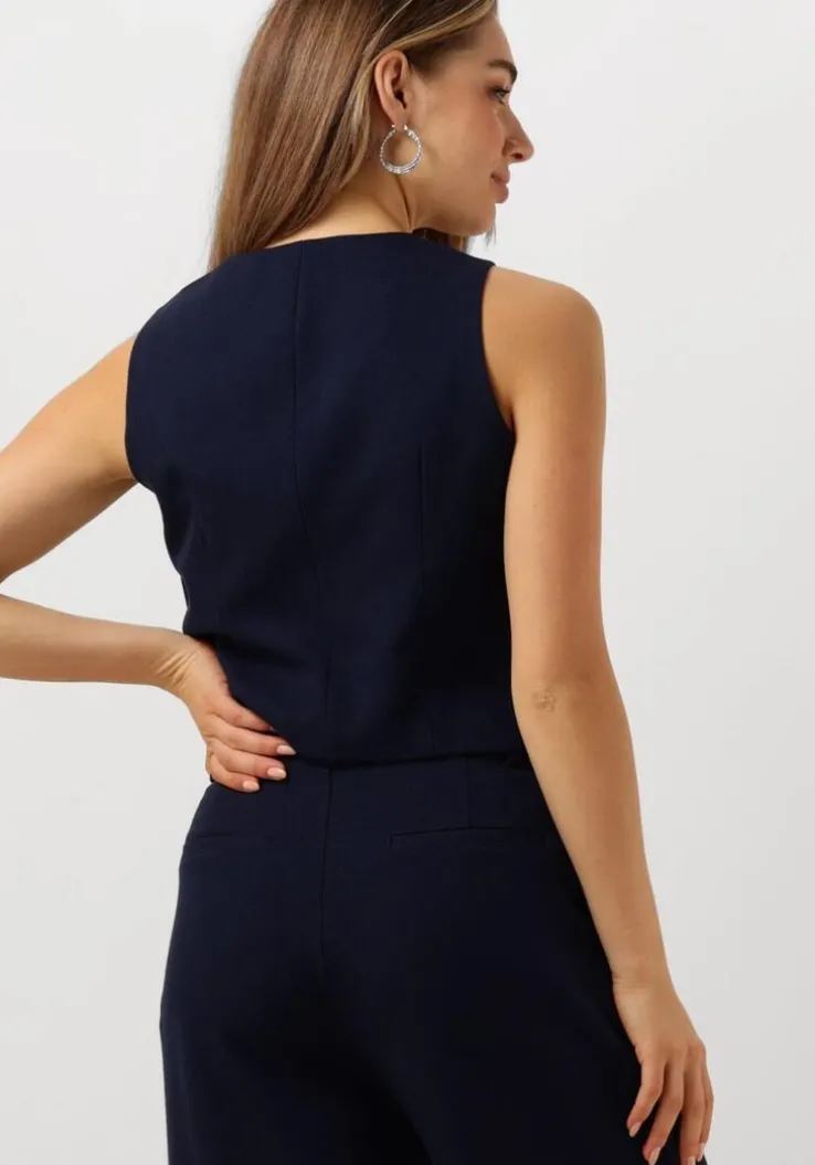 Voeg een vleugje elegantie toe aan je garderobe met de donkerblauwe NV-EKA gilet van NOTRE-V. Perfect voor een dag op kantoor of een chique diner. Deze stijlvolle gilet combineert moeiteloos met een witte blouse en een zwarte pantalon voor een verfijnde look. De subtiele grijstint maakt het eenvoudig te combineren met diverse kleuren en stijlen. Draag het over een casual T-shirt en jeans voor een meer ontspannen, maar toch verfijnde uitstraling. De NV-EKA gilet biedt veelzijdigheid en klasse, ideaal voor dames die houden van een tijdloze en stijlvolle outfit.