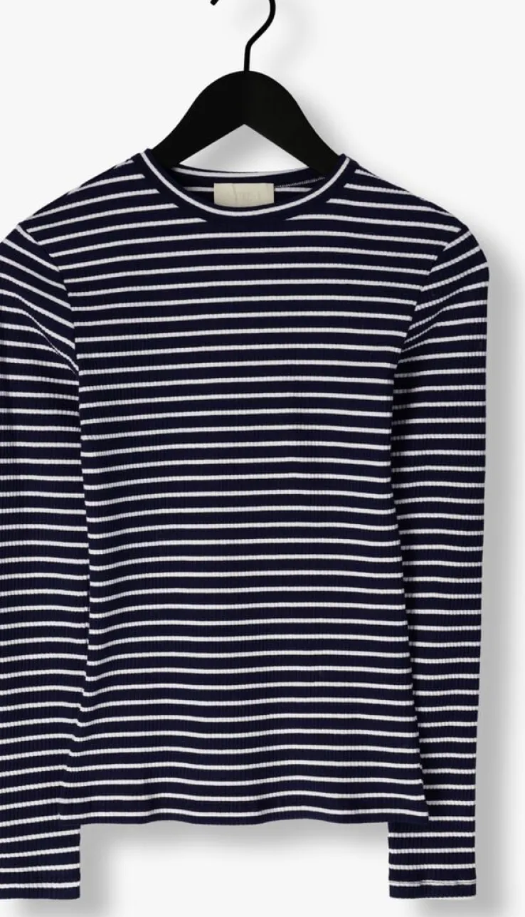 Maak kennis met de NV-EELKE ROUND NECK van NOTRE-V, een stijlvolle donkerblauwe top die niet mag ontbreken in je garderobe. Deze veelzijdige top met subtiele strepen draag je moeiteloos tijdens een dagje shoppen of een gezellige lunch met vriendinnen. Combineer met een strakke jeans voor een casual look of draag onder een blazer voor een chique touch. De ronde halslijn en het zachte materiaal zorgen voor een comfortabele fit, terwijl de tijdloze kleur zwart je outfit altijd een elegante uitstraling geeft. Voeg deze must-have toe aan je collectie en geniet van eindeloze combinatiemogelijkheden.